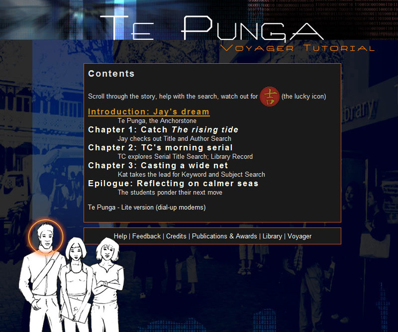 Te Punga was a website created at the University of Auckland to teach students good research skills for their studies. The tutorial utilised a graphic novel style framework and high levels of interactivity.